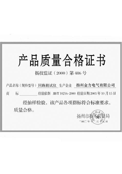 產品質量合格證書