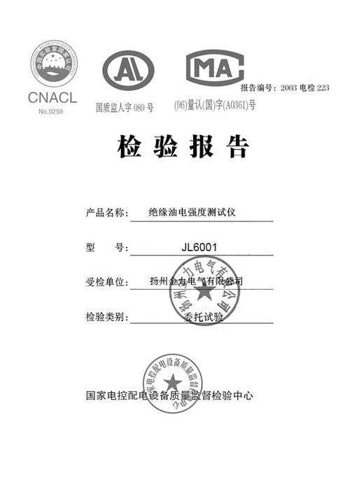 油耐壓測試儀檢驗報告