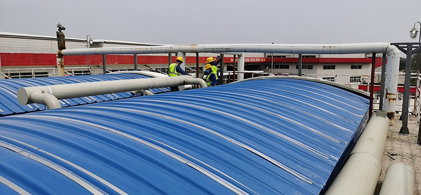 中糧可口可樂遼寧(北)污水處理站VOCs廢氣處理工程,整個(gè)處理工藝包括收集和處理兩大項(xiàng)。為了避免氣味源氣味擴(kuò)散,擴(kuò)散源要求封閉,并使整個(gè)厭氧池處于負(fù)壓狀態(tài)。和帆環(huán)境工程有限公司在根據(jù)沈陽可口可口VOCs廢氣處理要求和國家廢氣處理標(biāo)準(zhǔn),量身定制了一套VOCs廢氣處理方案。及時(shí)解決了污水站厭氧池臭氣擴(kuò)撒問題。由于工廠位置在冬季來臨時(shí)冷熱空氣的交換量比較大時(shí),要考慮防止冬天設(shè)備運(yùn)行結(jié)冰問題。和帆環(huán)境對(duì)針對(duì)PP管路和噴淋塔冬季運(yùn)行做了伴熱帶加橡塑海綿保暖措施。