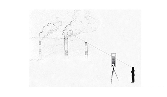 應在白天進行觀測,觀察者與煙囪的距離應足以保證對煙氣排放情況清晰地觀察。林格曼煙氣黑度圖安置在固定支架上,圖片面向觀察者,盡可能使圖位于觀察者至煙囪頂部的連線上,并使圖與煙氣有相似的天空背景。