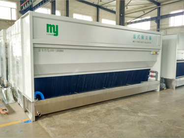 濕式除塵箱主要針對工業打磨,如石材、金屬、陶瓷、碳纖維制品、玻璃鋼、塑料制品等的打磨、拋光及注料口產生的飄揚粉塵進行除塵處理,有效改善車間生產環境。本產品內部結構系本公司專利產品,動力采用靜音風機,具有吸力強,噪聲小(≤75db)、能耗低、使用壽命長等特點,過濾部分采用PVC過濾材料,過濾效率高,不堵塞、不老化、免更換、降低維修成本,同時過濾材料過濾層表面設有水噴淋裝置,形成水幕,在過濾材料和水幕的同時過濾作用下,吸入的粉塵隨水幕落入到水槽中,達到除塵的目的。
