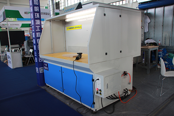 柜式打磨臺采用本公司專利結構,模塊化組合,由三大部分組成,脈沖噴吹、除塵過濾系統、吸風動力系統。該設備外形美觀,使用方便,將在打磨、切割、銑邊等生產過程中產生的粉塵吸入設備內,經過高密濾料吸附,脈沖噴吹等裝置進行過濾,清灰,收集,凈化排放。工作臺臺可以更具用戶需求進行調整,臺面堅固耐用,設備配有手動與自動功能,能夠最大限度節省電能。