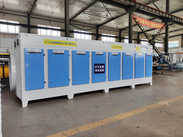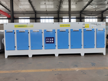 本產品利用特制的高能光束照射惡臭氣體,裂解惡臭氣體如:氨、三甲胺、硫化氫、甲硫氫、甲硫醇、甲硫醚、二甲二硫、二硫化碳和苯乙烯、硫化物H2S、VOC類、苯、甲苯、二甲苯的分子鏈結構,使有機或無機高分子惡臭化合物分子鏈,在高能紫外線光束照射下,降解轉變成低分子化合物,如CO2、H?O等。