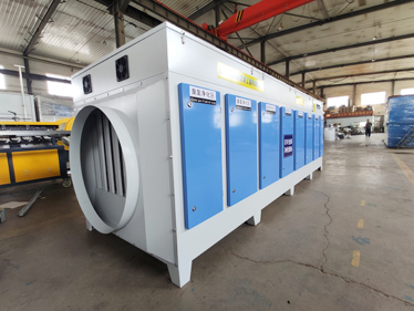 當惡臭氣體利用排風設備輸入到本凈化設備后,凈化設備運用高能C波光束及臭氧對惡臭氣體進行協同分解氧化反應,使惡臭氣體物質其降解轉化成低分子化合物、水和二氧化碳,再通過排風管道排出室外。
