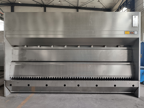 水洗式水簾柜借助水泵作用提水形成水簾。避免了因水泵和管道堵塞、損壞引起的故障,大大提高了固體漆霧顆粒的凈除效果。其漆霧處理方法科學有效,是一種技術較為先進的漆霧處理設備。