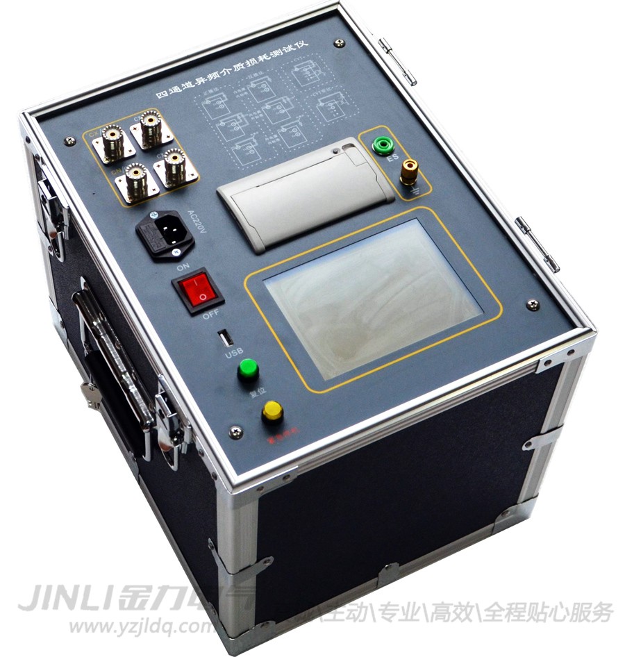 JL3004四通道異頻介質損耗測試儀是發電廠、變電站等現場或實驗室測試各種高壓電力設備介損正切值及電容量的高精度測試儀器。儀器為一體化結構,內置介損測試電橋,可變頻調壓電源,升壓變壓器和SF6 高穩定度標準電容器。測試高壓源由儀器內部的逆變器產生,經變壓器升壓后用于被試品測試。頻率可變為50.0Hz、47.5Hz52.5Hz、45.0Hz55.0Hz、60.0Hz、57.5Hz62.5Hz、55.0Hz65.0Hz,采用數字陷波技術,避開了工頻電場對測試的干擾,從根本上解決了強電場干擾下準確測量的難題。同時適用于全部停電后用發電機供電檢測的場合。該儀器配以絕緣油杯加溫控裝置可測試絕緣油介質損耗。