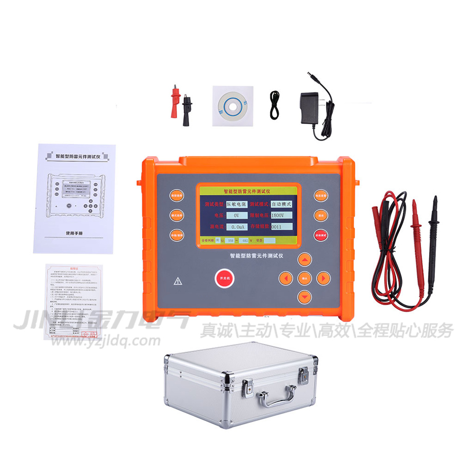 JL8007智能型防雷元件測試儀又名防雷元件測試儀、SPD現場測試儀,用于避雷器、防雷器、浪涌保護器、壓敏電阻、金屬陶瓷放電管、直空避雷管等性能測試的儀表。本儀表采用充電功能離線使用克服了傳統產品要插電使用不方便現場操作的缺點、電壓輸出2000V應用范圍更加廣泛、使用高壓短路保護、自動放電功能、儀表可靠耐用。同時具備絕緣電阻測試功能、采用豪華大彩屏幕顯示、數據存儲、數據查閱、合格判斷、自動關機、USB數據上傳等功能。整機美觀,量程寬廣,分辨率高,操作便捷,攜帶方便,準確、可靠、性能穩定,抗干擾能力強。