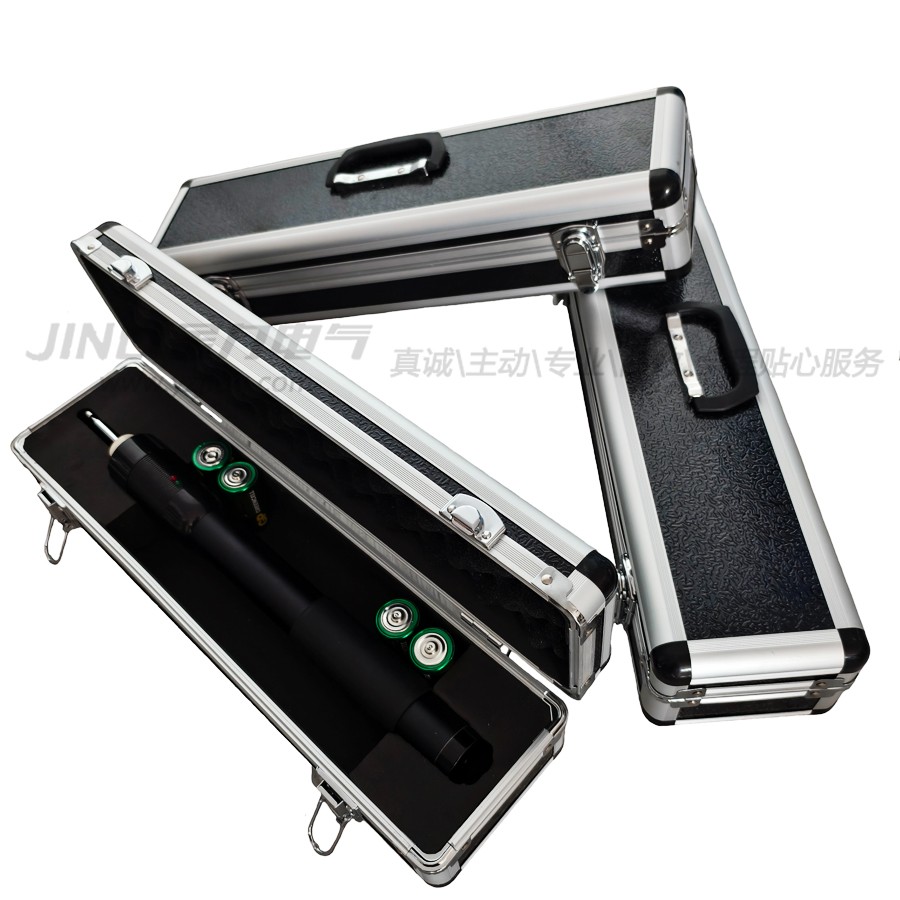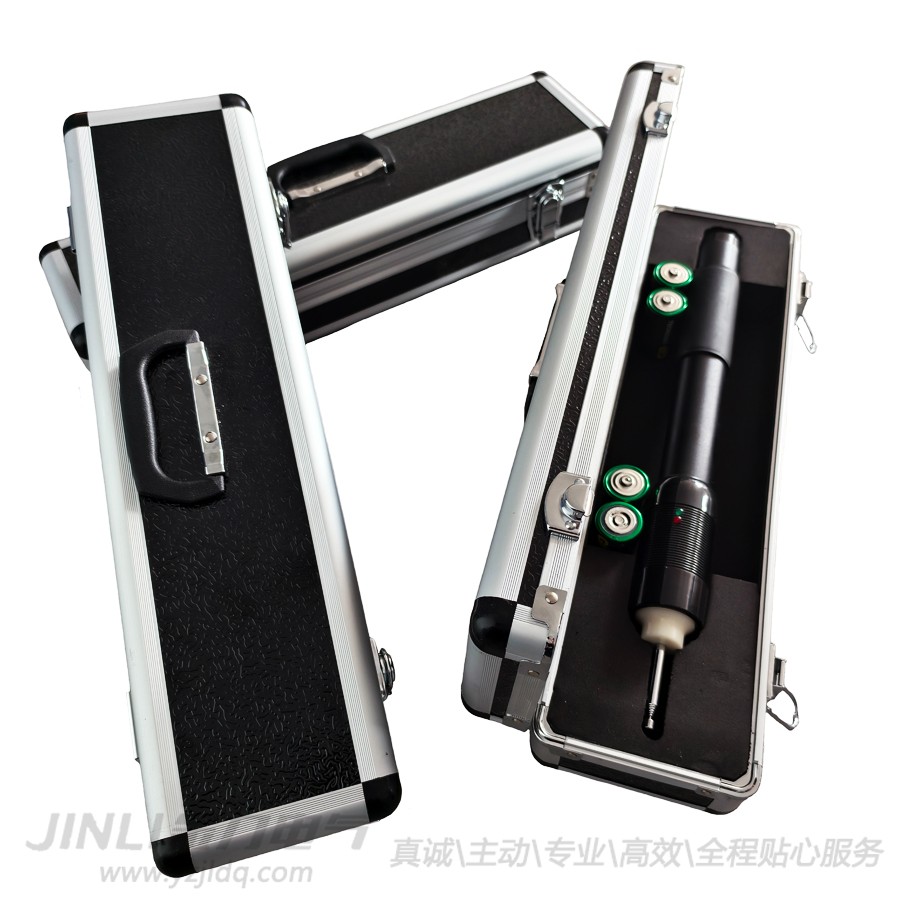 電源開關設在器身與頭部之間,任意方向旋轉90度,聽到“喀嚓”聲后即表示電源接通,反之為電源關閉。使用前先在尾部插入接地線并與地接好,根據計數器高度在未接通電源前將頭部伸縮導電桿拉出到合適長度。接通電源后綠燈亮,待紅燈亮(約3~8秒)即可通過頭部伸縮導電桿對避雷器計數器進行測試。該儀器無須關閉電源可反復進行測試(每次充電時導電桿應離開試品)。該儀器采用一號電池四節供電,可供大于2000次的放電測試。若電池電量不足時會延長充電時間,應及時更換。建議:長時間不用應把干電池從儀器中取出!